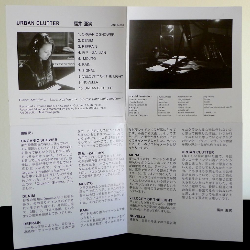 The twinkling chords which open Ami Fukui’s debut album Urban Clutter from 2010 shine like a crystalline spotlight, signaling the immediately satisfying sounds and clean, uncomplicated feel-good grooves of the music to come. This first album from the jazz pianist lays down the groundwork for Fukui to showcase her compositional skills for jazz piano trio, which she will explore further on her follow-up albums Amizm (2013) and New Journey (2016).