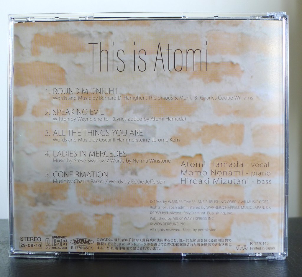 Jazz singer Atomi Hamada releases This is Atomi, a five-track debut featuring songs she has loved as jazz instrumental standards. Here, using her voice as an instrument, she adds a fresh dimension to songs that some listeners may have heard only instrumentally before.