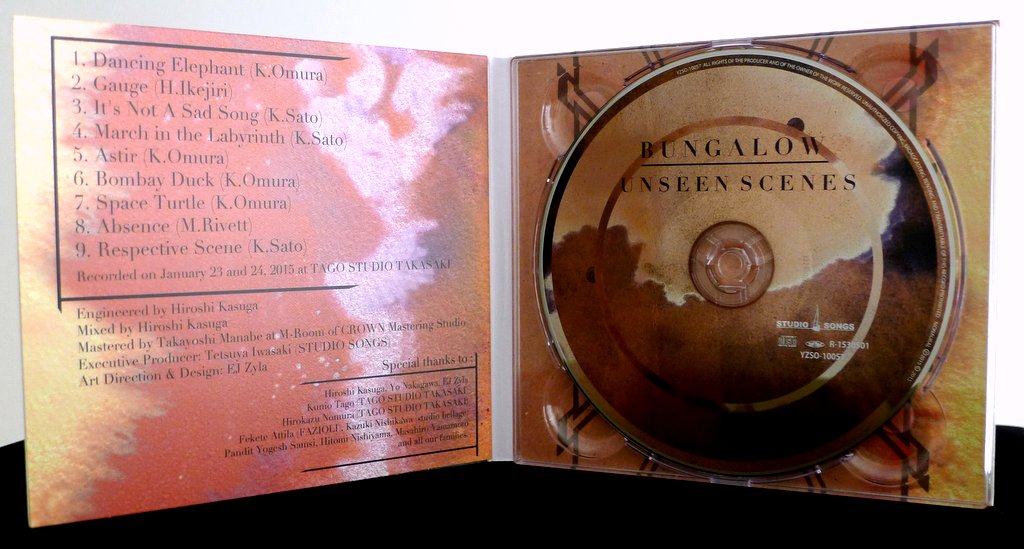 Notable tracks include the modern “Gauge”, the European fusion “Astir”, the grand “Dancing Elephant”, and “Bombay Duck” with pleasant sounds of the tabla drum. The final track “Respective Scene” also introduces a new side to Bungalow, where the sounds of electronic knocking, static, whirring, and beeps create a soundscape as the other instruments vamp slowly.