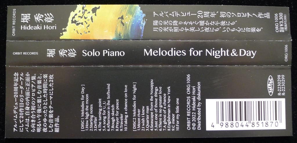 As a companion piece to the previous article on Hideaki Hori’s Horizon, this follow-up post introduces the pianist’s recent solo album Melodies for Night & Day from 2022. Posting about the same musician in succession here is rare but somewhat appropriate, as this new album also pairs well with the pianist’s debut album from the previous article, marking a twenty-year milestone and a total of twenty albums released under his name in those years.