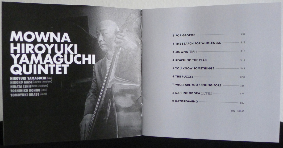 On Mowna, the returning members from Yamaguchi’s sextet are Hiroko Mase on soprano sax, Hinata Ishii on tenor sax, and bassist Yamaguchi, and newly added members for this release are pianist Toshihiko Kohno and drummer Tomoyuki Okabe.