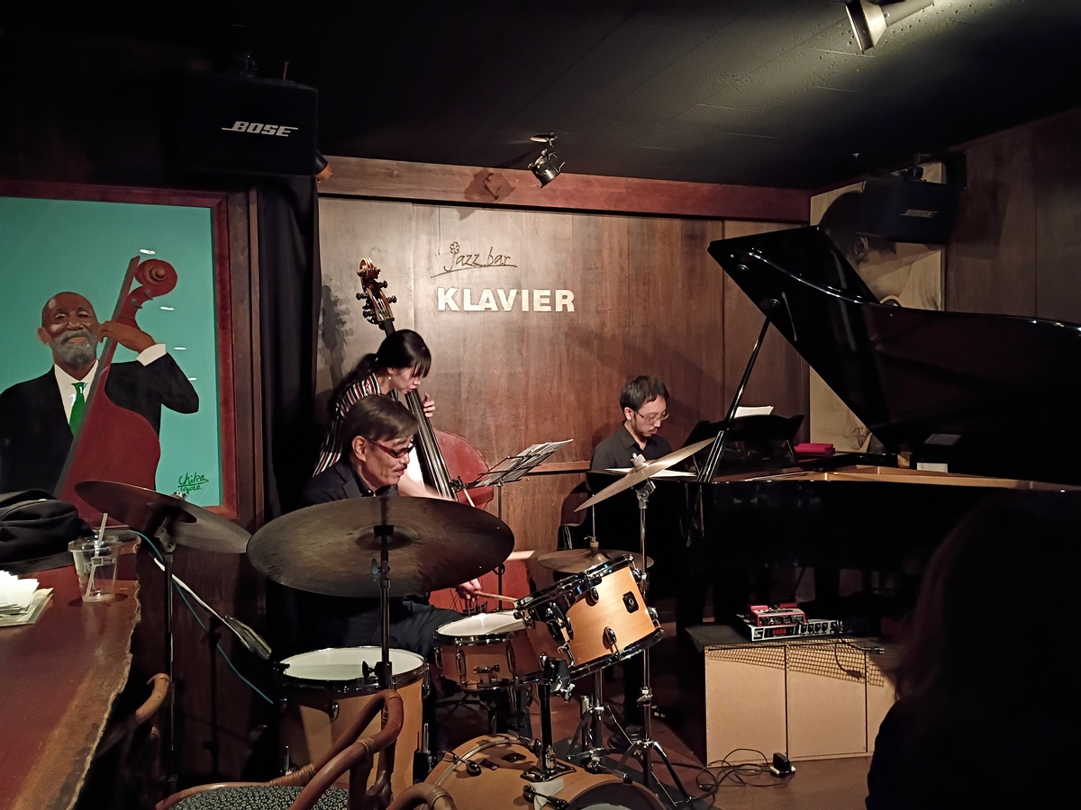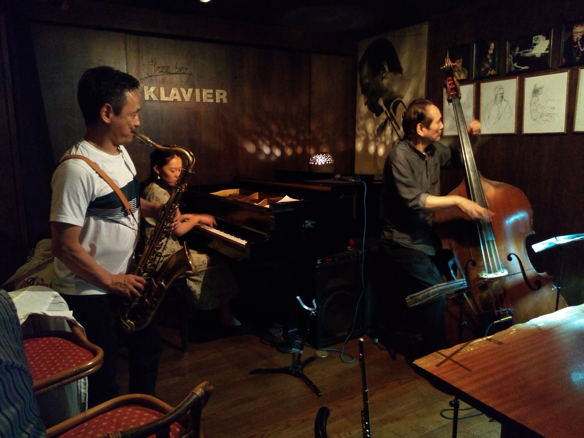 Klavier is right outside the southern exit of Asagaya station. As part of the chain of Chou-line jazz joints, it’s possible to hop on and off the line at different stations to visit other bars along Chuo, but this may be easiest done on successive nights rather than trying to bar hop to multiple jazz spots in one night. Bar-hopping that is dependent on short train rides is possible and fun, and is an exciting plan for those who are in the city for a few days and want to visit as many venues as possible during their limited time. It’s also not uncommon that local listeners want to attend more than one specific performance on the same night, truly fortunate conditions for music fans in the jazz abundant areas of Japan. But, this bar hopping does involve missing chunks of each set, or even entire sets, at the different venues, and sometimes it’s hard to pull yourself away from a good time spent at one venue where you can catch all the music from beginning to end.