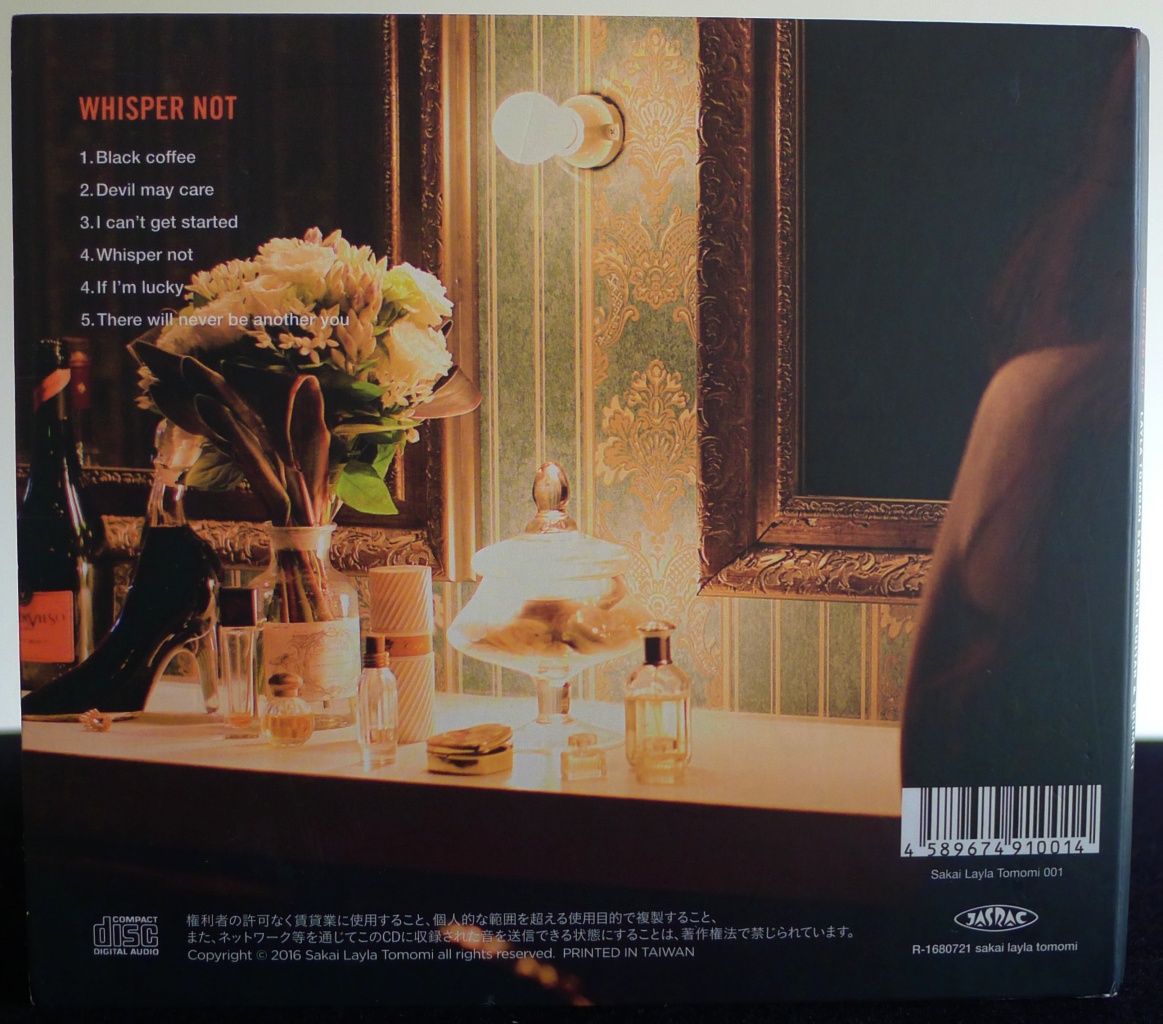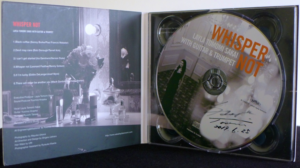 Whisper Not is vocalist Layla Tomomi Sakai’s debut release from 2016. Performing here with an intimate guitar and trumpet combo, the striking singer chooses comfortable jazz standards such as “Black Coffee”, “I Can’t Get Started”, and “There Will Never Be Another You” to introduce new listeners to her smooth, husky voice and relaxing style. Six songs are included, and tempos settle at midtempo swing, bluesy groove, or slow sultry ballads, with energy peaking on the quick and exciting “Devil May Care”.