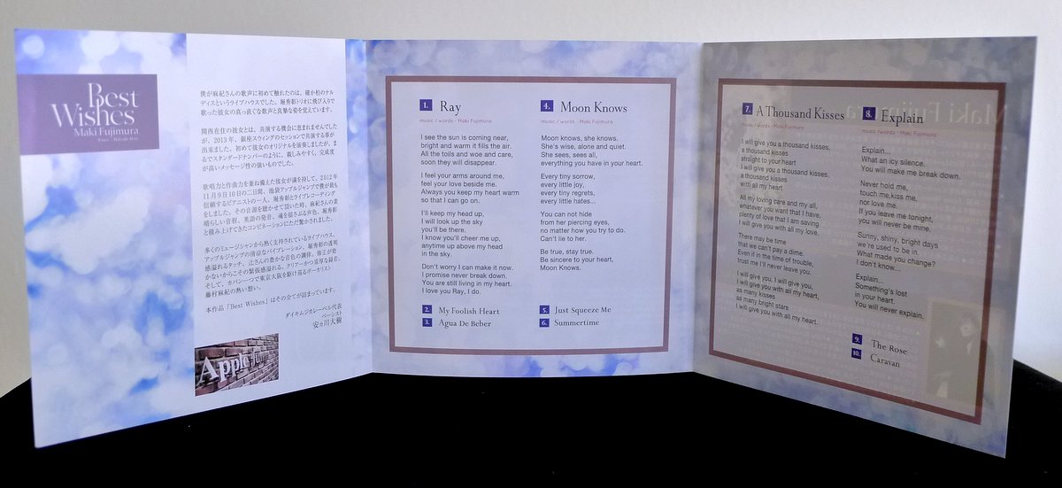 Fujimura uses her voice as a musician’s instrument, moving from soft ballads to high-energy sprints, singing as a true musician in charge of her instrument with deep musical knowledge. The singer evokes moods from romantic love and positive energy to moments of moody solitude, while pianist Hori provides the perfect musical partnership gained through their years of playing together on innumerable live dates.