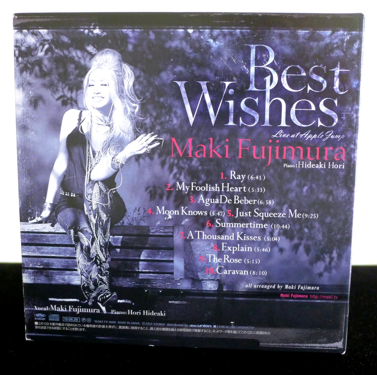 Glamorous Osaka-based singer Maki Fujimura enraptures the audience with her silky voice and energetic improvisation on this live album recorded at the intimate Tokyo jazz bar “Apple Jump”.