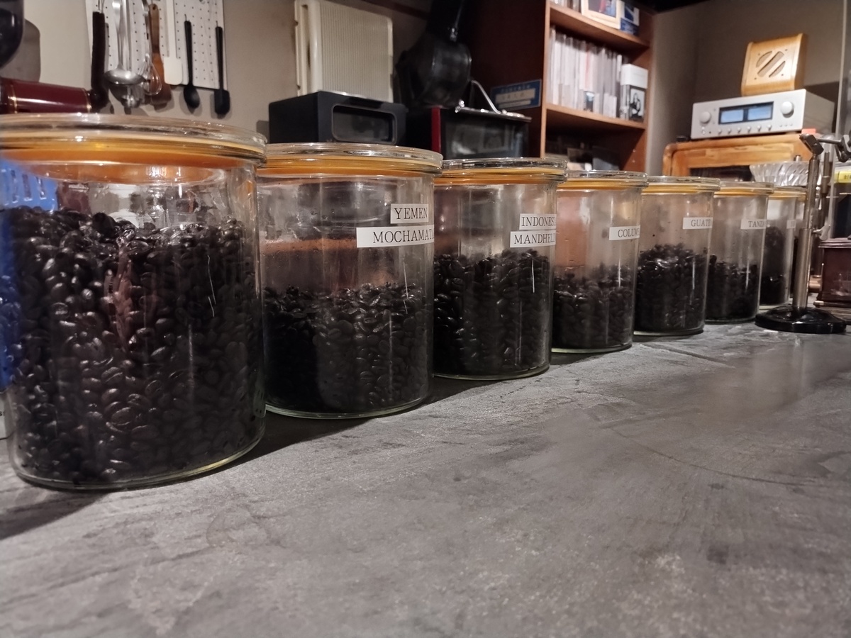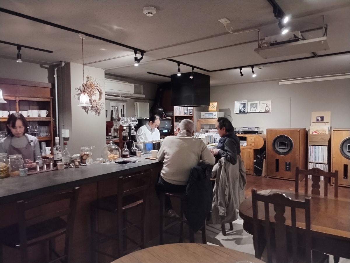 While customers enjoy their coffee or meals, jazz BGM (background music) fills up the room. Big wooden speakers are set at the inner wall and set for great sound, faithfully reproducing with mellow, rich, and warm sounds of music played through LPs and CDs. Once I noticed some customers (regulars, or friends of the owners?) bringing in their just-purchased CDs from the nearby Disk Union shop to request a spin on Slow Boat’s system as they enjoyed their coffee and conversation.