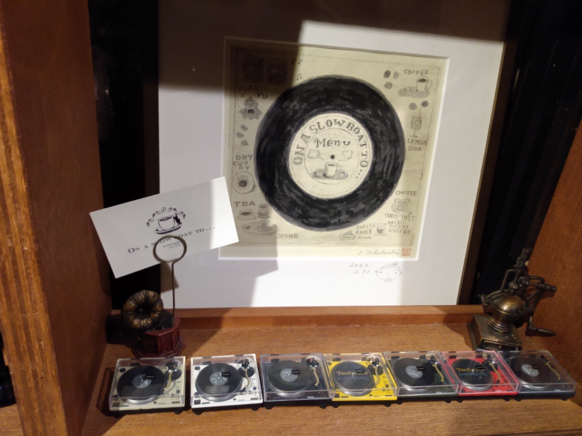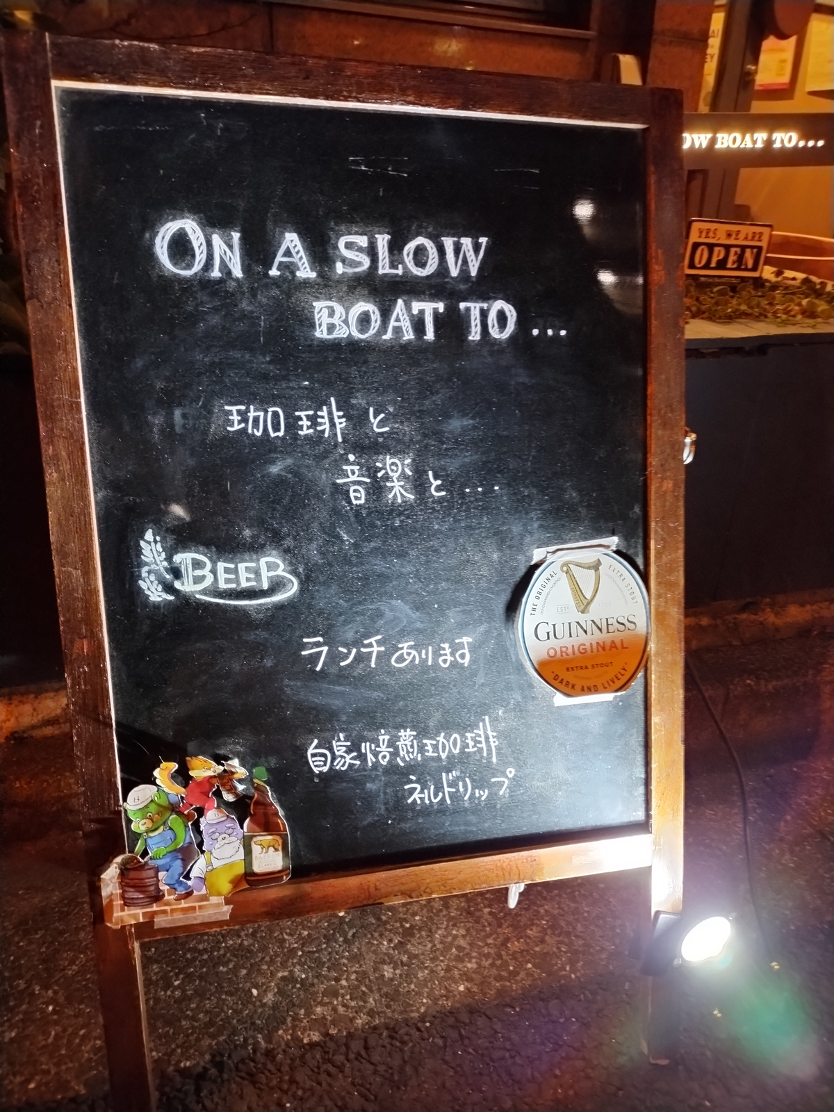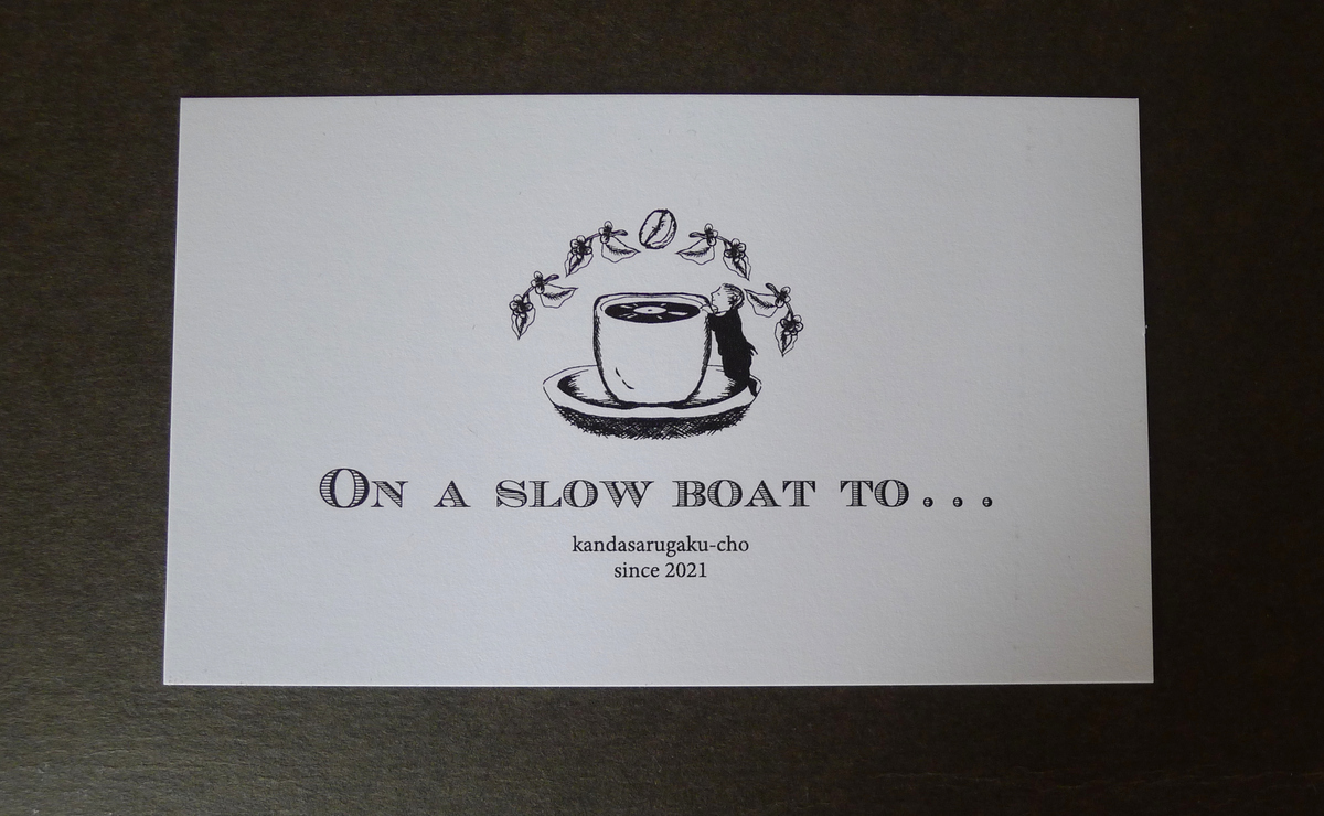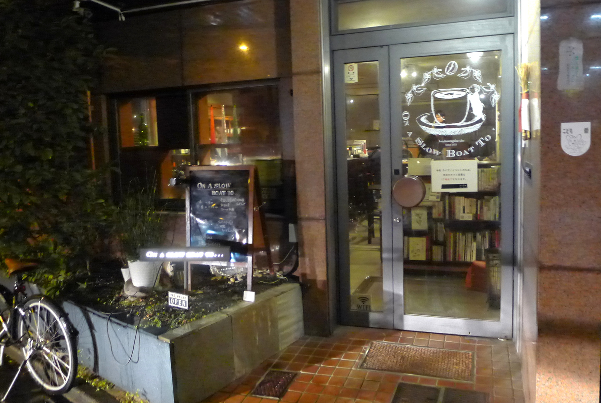 On A Slow Boat To… (aka SLWBT2) is a small cafe offering coffee and jazz in the Jimbocho district of Tokyo. While the name of this cafe references the well-known song and its descendant old-timey catch-phrase, the cafe’s introduction also cites an early short story by Harumi Murakami with the same title. Like the song’s meaning of taking a lengthy journey, the shop explains that their setting aims to be a place where time slips away, yet where there is plenty of time to relax and listen to music. The trailing off nature with its ellipses … indicates that the destination, unplanned or unfinished, can be up to you, and you can take your time getting there.