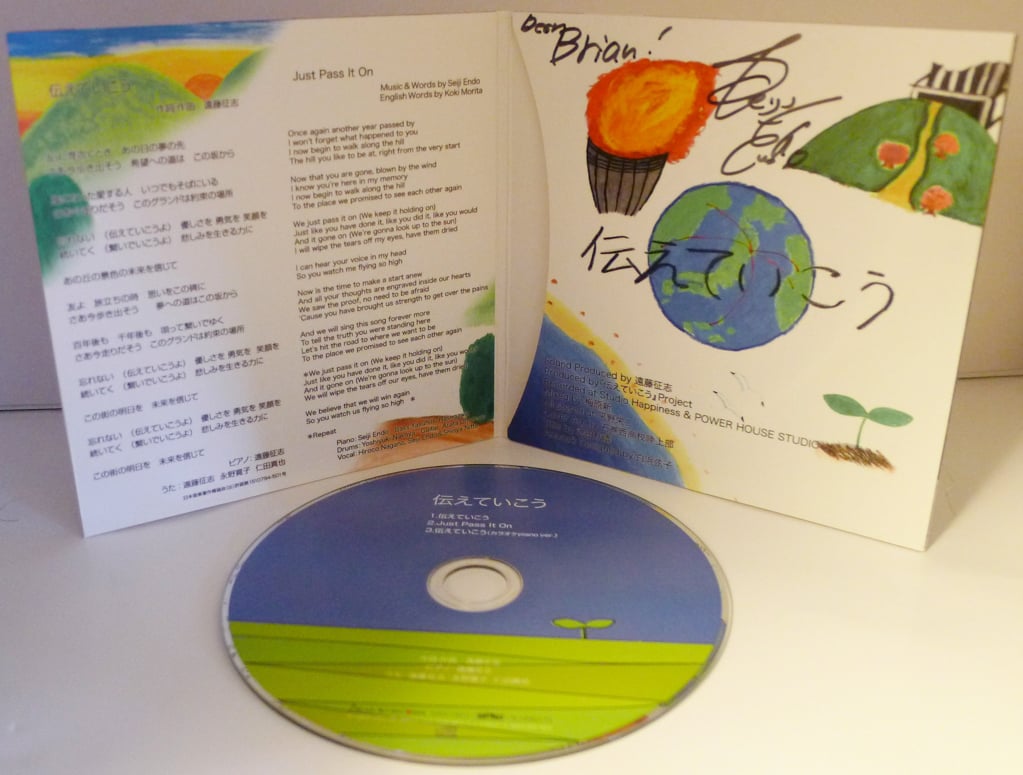 The CD contains three versions of the song “Tsutaete Ikou”, and proceeds were donated to affected disaster areas and educational funds for children.