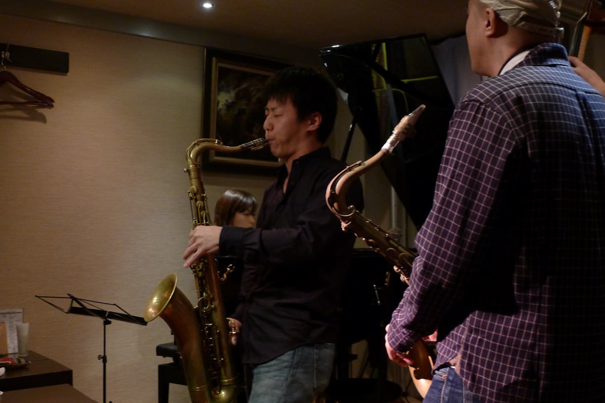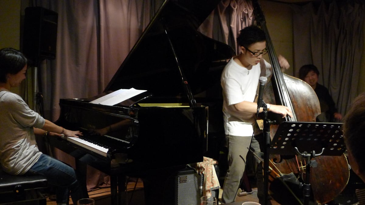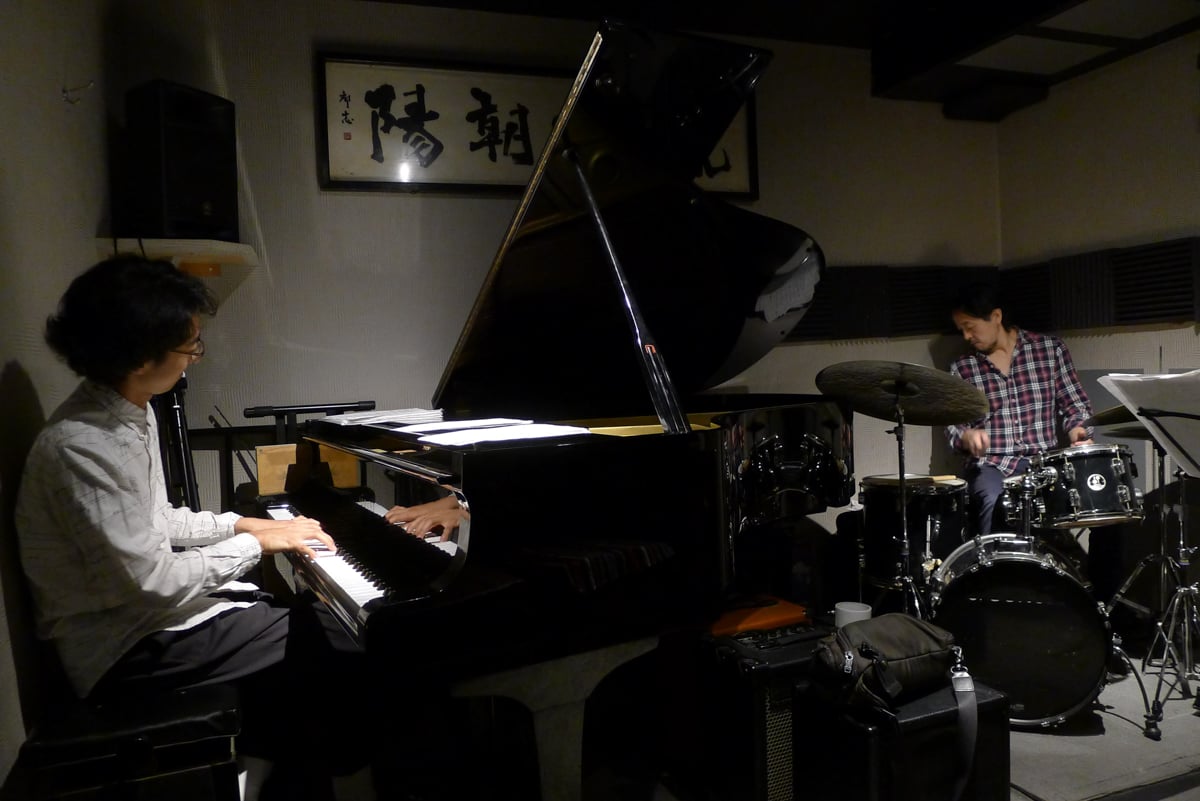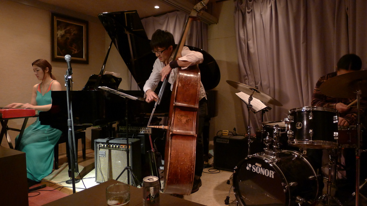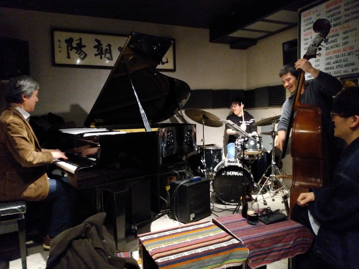 After the first three years, Thelonious moved to a second location nearby, operating there for roughly eleven years. This second location occupied a basement-level space right across the street from the Higashi-Nakano train station. The space was separated into two rooms, basically a front bar/lounge area and a back room for live jazz performances and jam sessions. This back room held soft couch-style seats and small tables next to the stage area, with more chairs and seats extending back into a hallway that bridged the front and back rooms. Approximately four to six listeners in the backroom jazz area would have the best (and loudest) spots, right up front with the musicians, and the remaining guests would fill out the seats further out into the hallway. It was here where hundreds of jazz performances and jam sessions were held, helping to bring Thelonious into its own as a highly appreciated jazz spot regularly supported by musicians and fans.