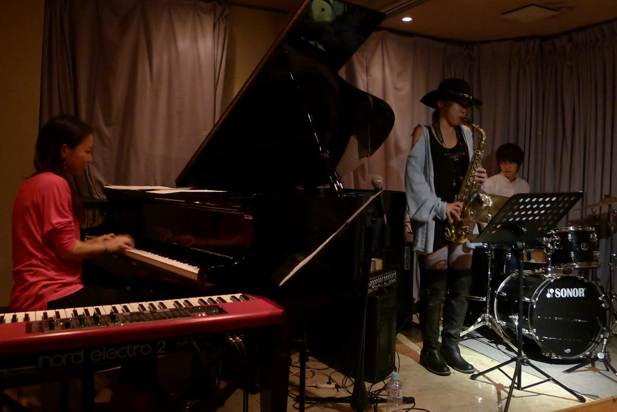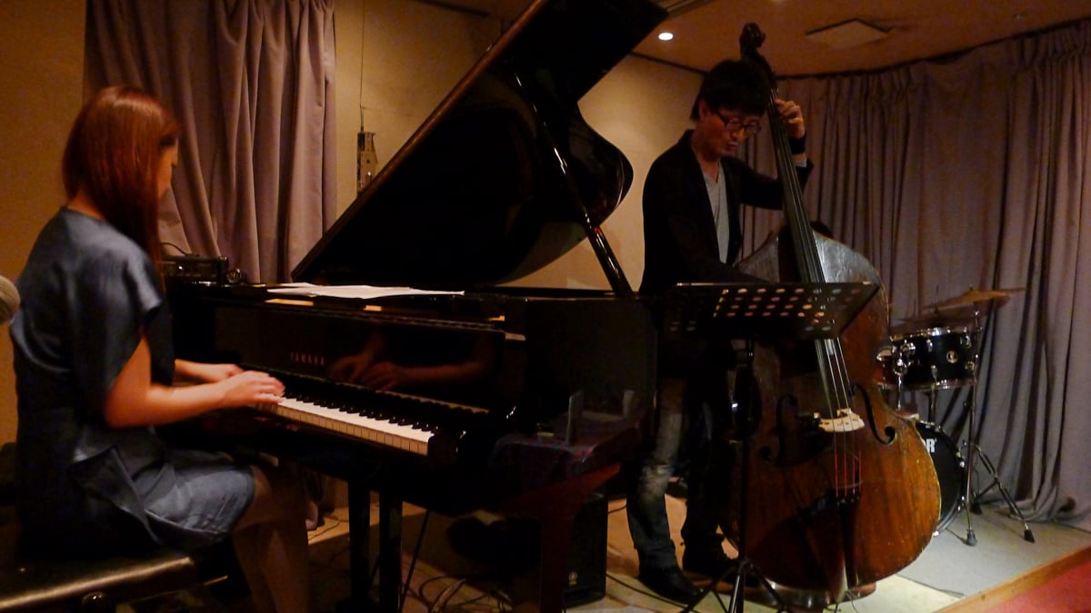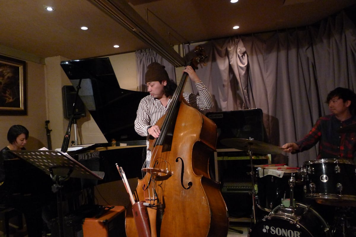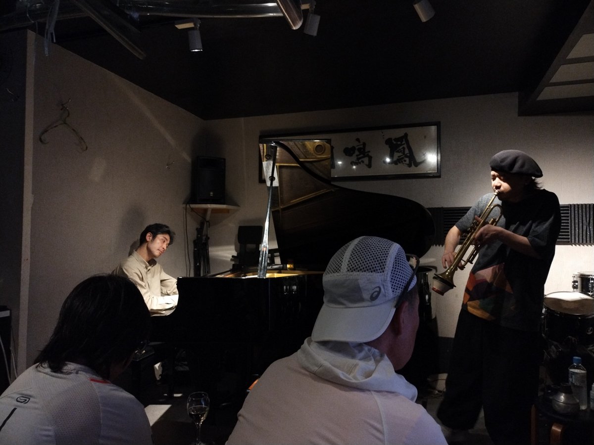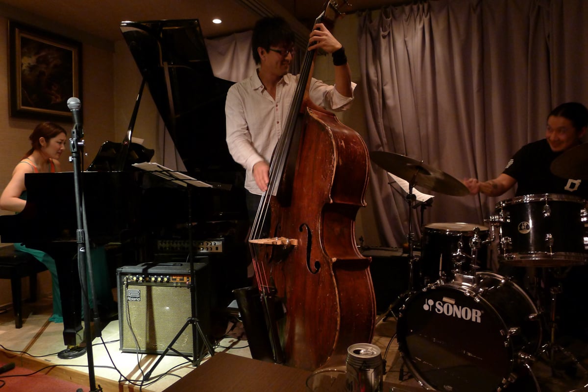 After the first three years, Thelonious moved to a second location nearby, operating there for roughly eleven years. This second location occupied a basement-level space right across the street from the Higashi-Nakano train station. The space was separated into two rooms, basically a front bar/lounge area and a back room for live jazz performances and jam sessions. This back room held soft couch-style seats and small tables next to the stage area, with more chairs and seats extending back into a hallway that bridged the front and back rooms. Approximately four to six listeners in the backroom jazz area would have the best (and loudest) spots, right up front with the musicians, and the remaining guests would fill out the seats further out into the hallway. It was here where hundreds of jazz performances and jam sessions were held, helping to bring Thelonious into its own as a highly appreciated jazz spot regularly supported by musicians and fans.