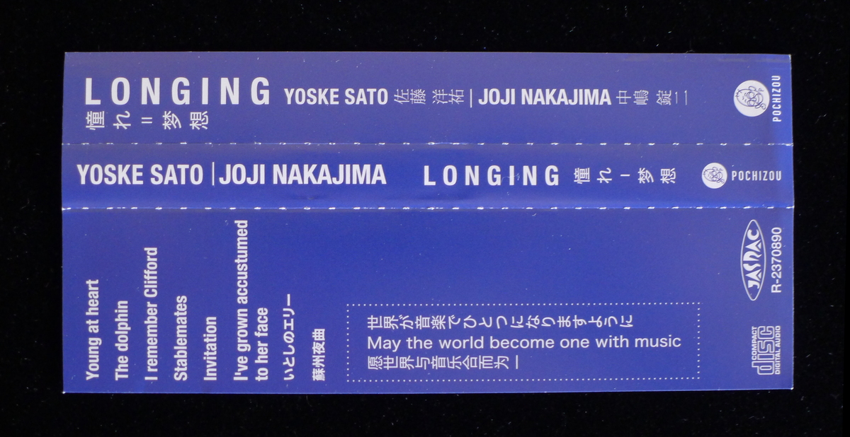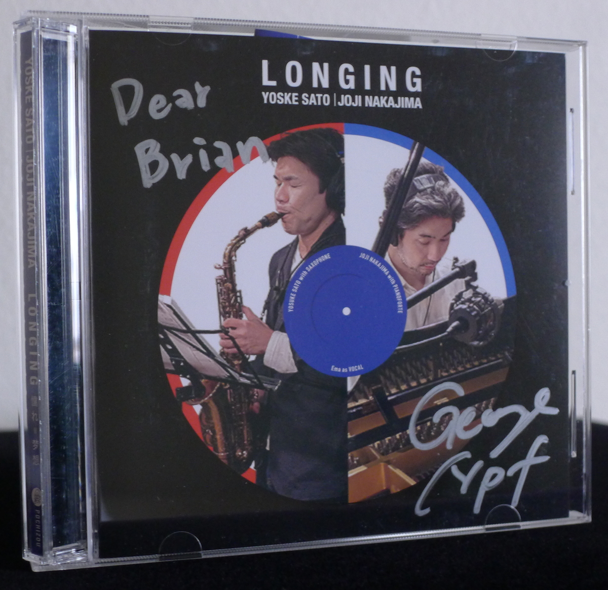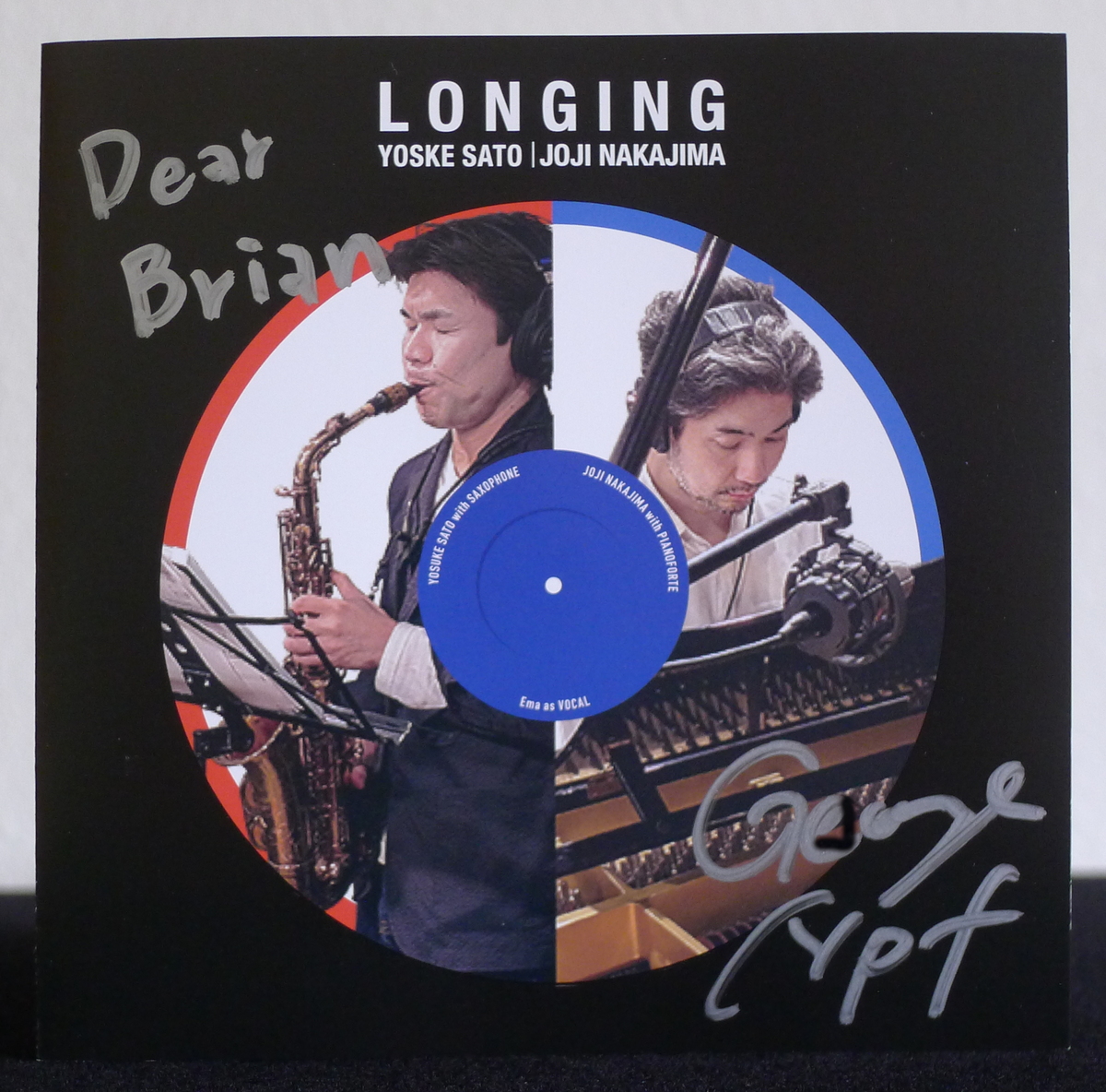 Longing is the title of a 2023 jazz duo album from saxophonist Yosuke Sato and pianist George Nakajima. This is an eight-song, forty-five-minute album of familiar jazz standards and two Japanese pop songs. Of the eight songs, the first six are played by the elegant hand-in-glove duo of saxophone and piano. To wrap up the album, the duo becomes a trio as vocalist Ema joins in for the last two songs, singing beautifully in English and Japanese. The album’s title Longing may lean into some unnamed persistent desire portrayed in their playing, the long ago brought to life through their selection of timeless songs.
