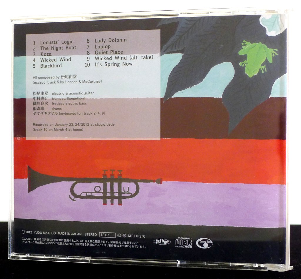 The core band is made up of guitar, trumpet, fretless electric bass, and drums, with guest keyboard on three tracks adding a warm bluesy sound for extra soul. While much of the music is built around a fusion jazz/rock mood which runs through the album, the dial also moves to include smooth jazz sounds, evocative jazz waltzes, and pop, including a rendition of “Blackbird” by The Beatles. One track, “Loplop”, comes closest to pure bop guitar with a fast swing beat and walking bass, where Matsuo plays quick jazzy lines in the style of guitarists such as Tal Farlow and Pat Martino.