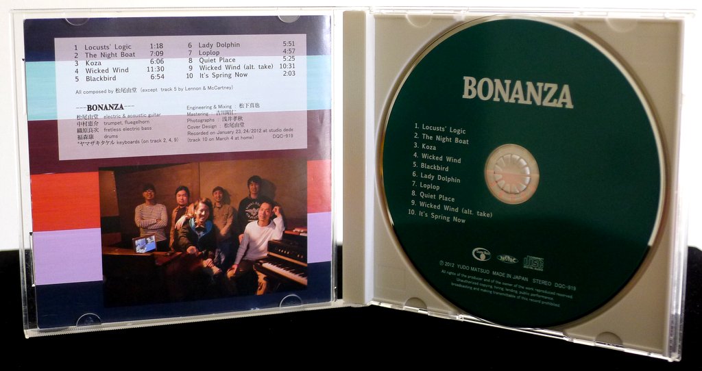Bonanza, from 2012, is the debut release from guitarist Yudo Matsuo, whose kinetic quartet performs original songs with influences from electric jazz fusion to pop songwriters, a palette of sounds reflecting his varied artistic sides.
