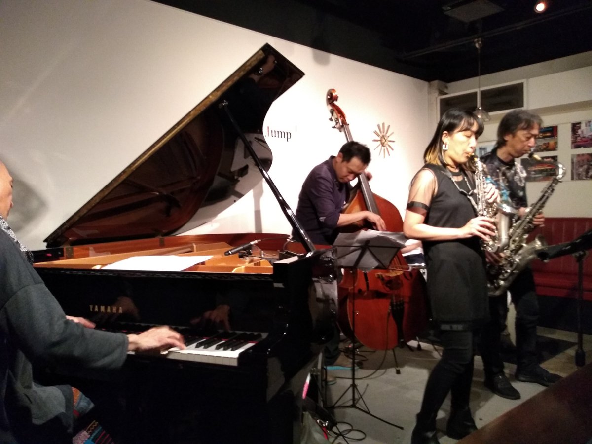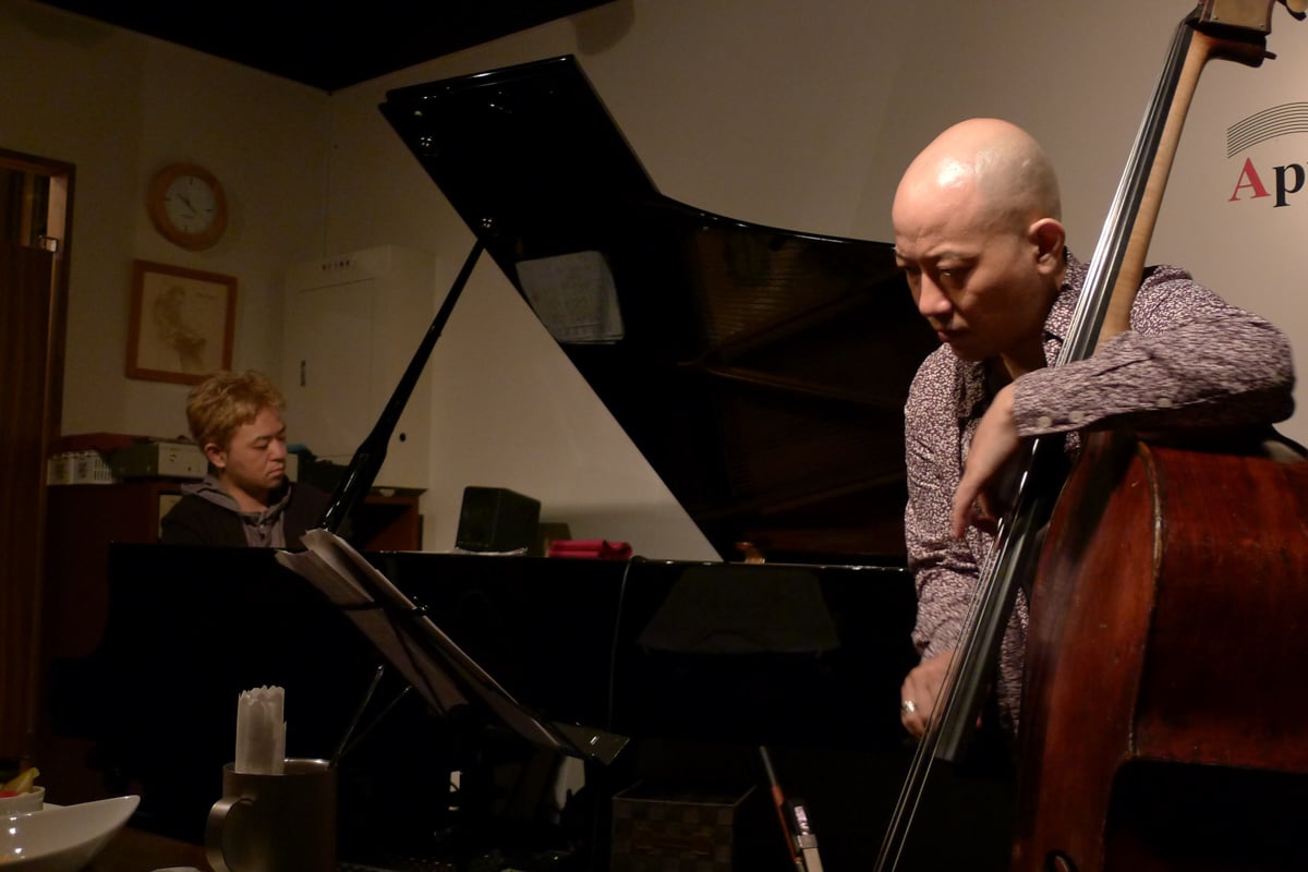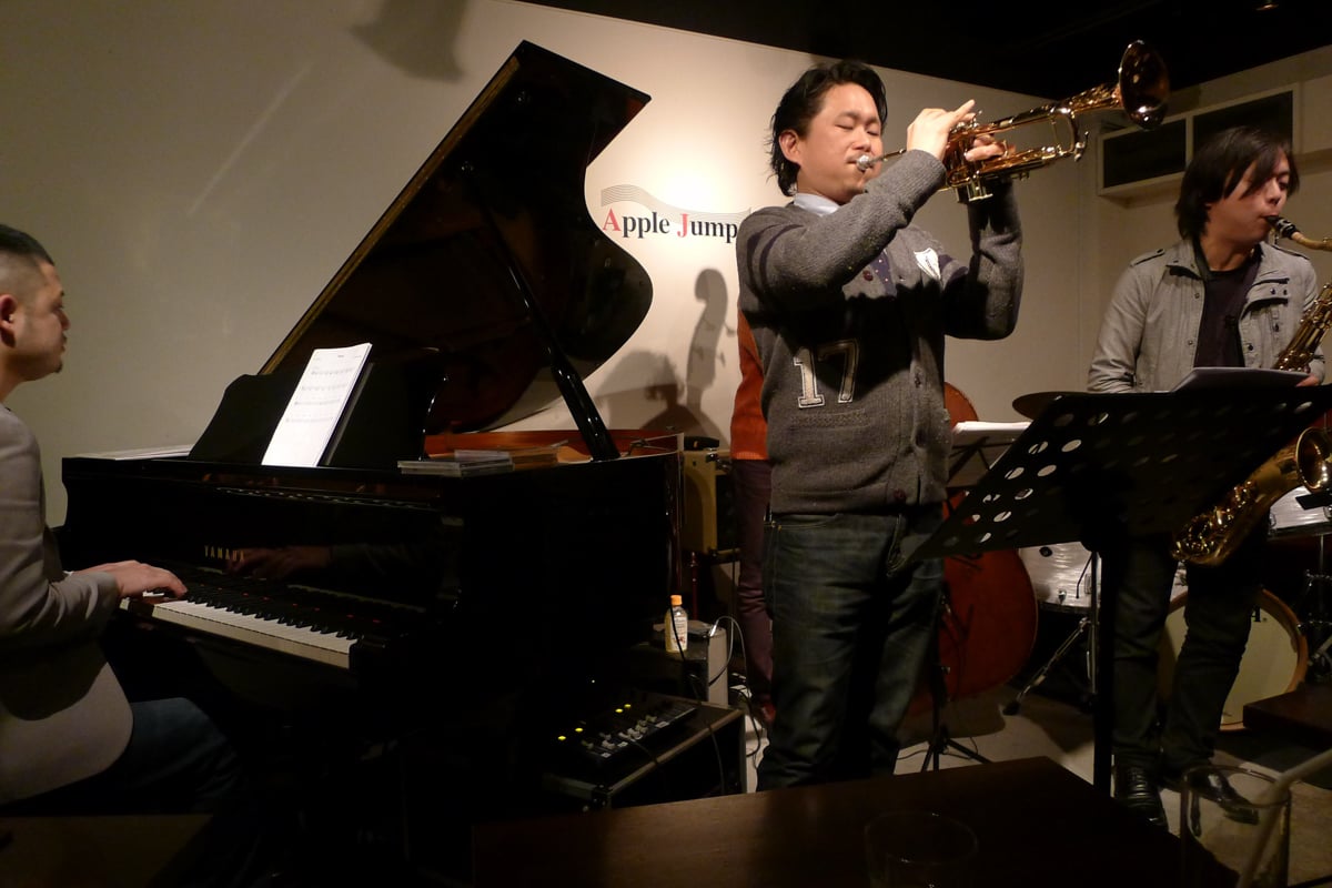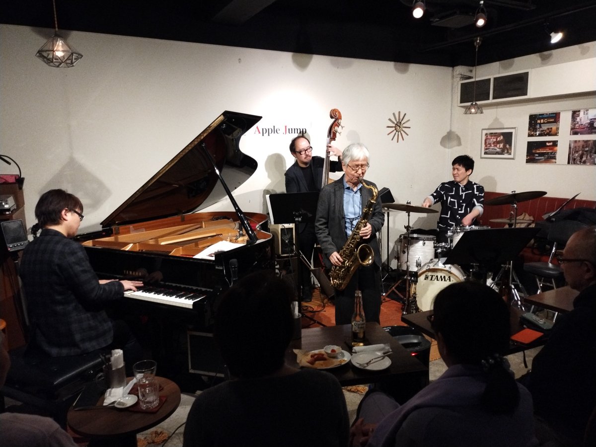 Located in Ikebukuro, Tokyo, Apple Jump was a newer entry (about fifteen years ago) to the Tokyo jazz bar scene. It’s a small star in the wide galaxy of jazz bars in Tokyo, a humble joint that has continued to make an excellent impression through a calendar of steady and satisfying events.