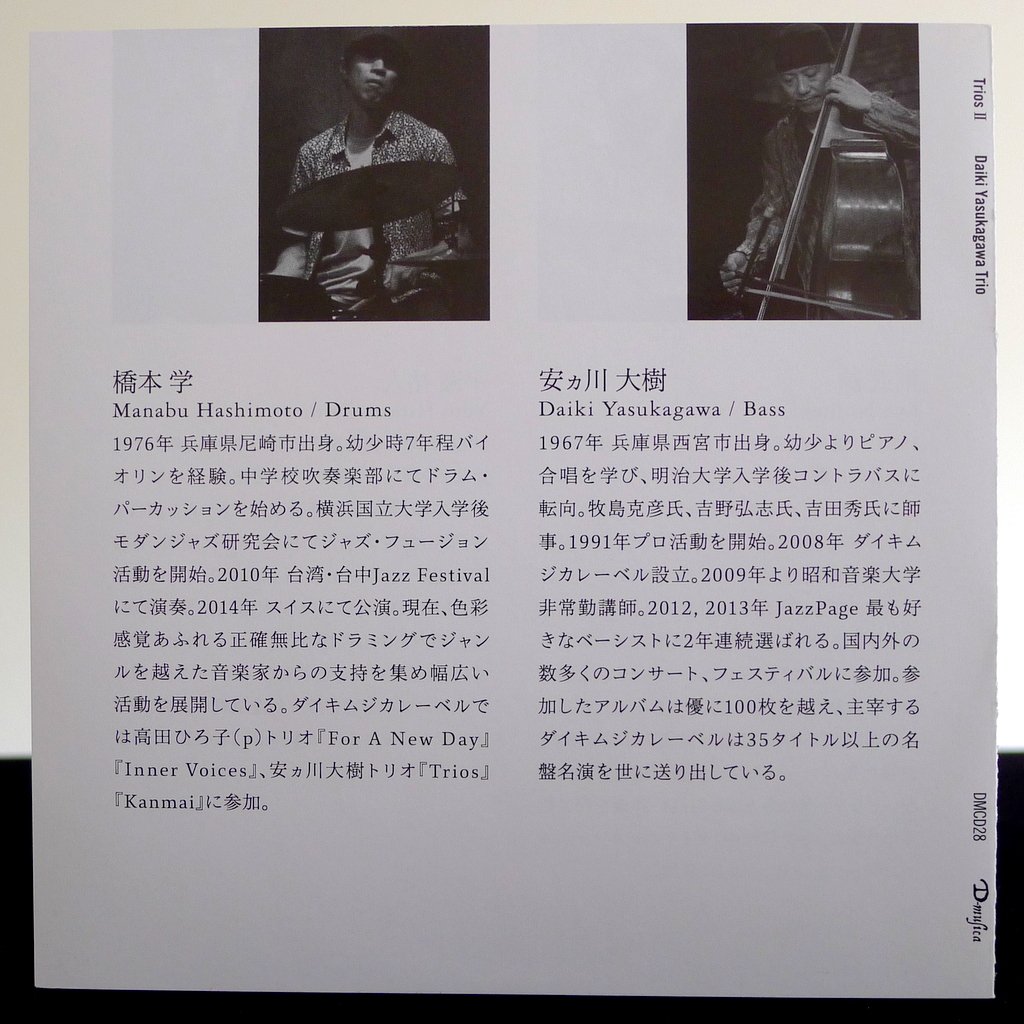 In addition to providing a glimpse into the modern working trio in Tokyo’s current jazz scene, Trios II is also a great standalone package of jazz piano trios performing Yasukagawa’s music for a comfortable, mood-enhancing collection.