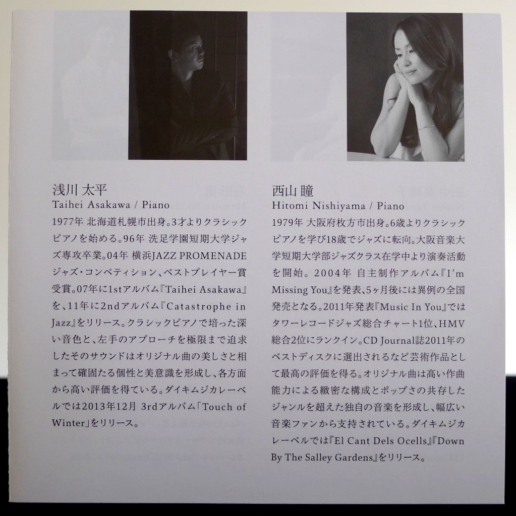The pianists and drummers are all players who perform with the bassist on different albums and at live shows in Japan, and each member adds personal touches and dynamics to the combos. The majority of songs are originals from the bassist, with the balance being in favor of slower tempo ballads and relaxed moods built upon the bassist’s deep, weighty sound and timing. A few uptempo numbers are included, starting with the album opener West Side Story’s “Tonight” which kicks things off with a great swing beat, Yasukawaga’s own joyful “My Bebop Tune”, and an exuberantly wild “Circle III”.