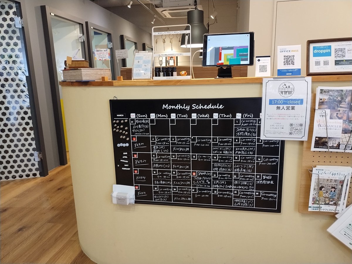 This underground space goes by “Creative Basement Expression” and “Coworking and Jazz Club Expression”. It is a typical tidy and organized multi-use room.