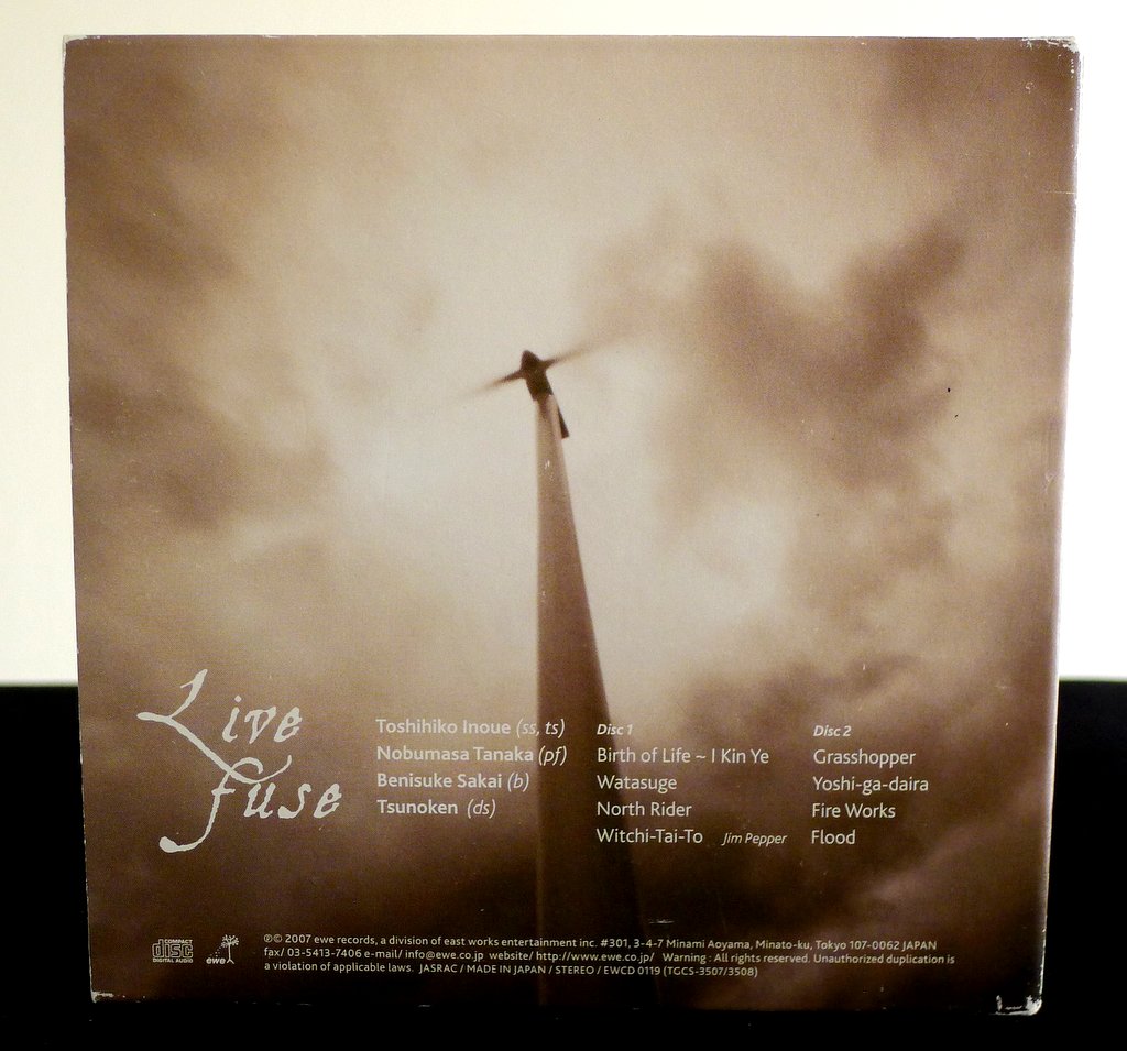 Disc two features four more extended tracks: the straight-forward and playfully multi-faceted “Grasshopper”, the evocative poem-like scenery of “Yoshi-Ga-Daira”, the funky exuberance of “Fireworks”, and the minimal framework of “Flood” sustaining the onrush of free group expression.