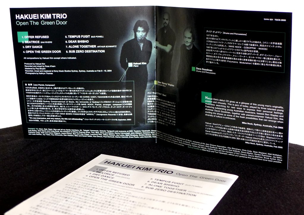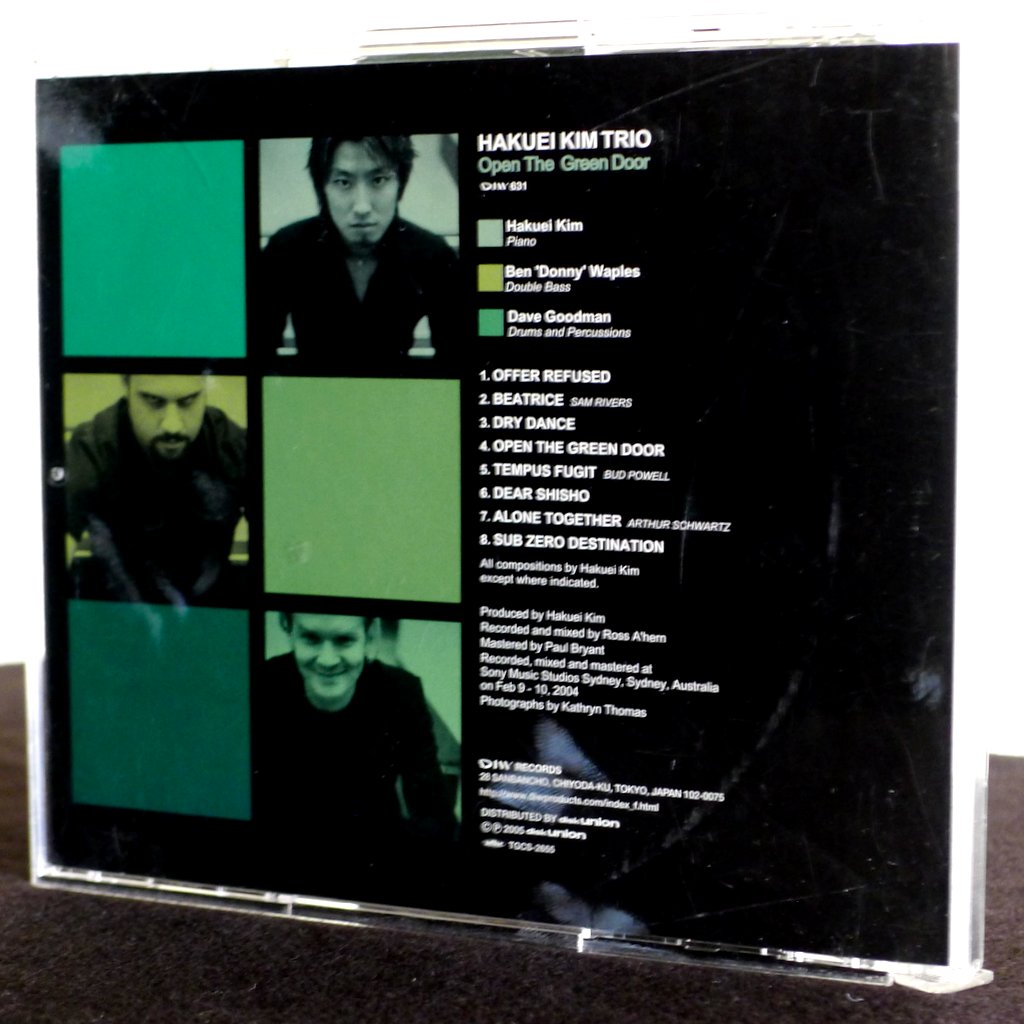 Modern to the point of futuristic, Open the Green Door features an exciting jazz piano trio with the pianist Hakuei Kim leading a stellar Australian rhythm section of Ben “Donny” Waples on bass and Dave Goodman on drums.