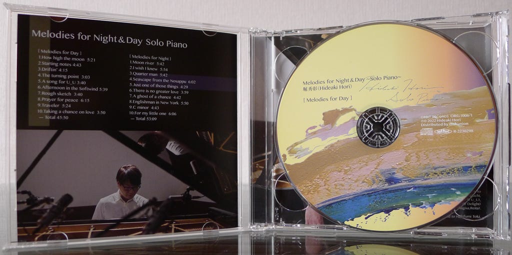 As a companion piece to the previous article on Hideaki Hori’s Horizon, this follow-up post introduces the pianist’s recent solo album Melodies for Night & Day from 2022. Posting about the same musician in succession here is rare but somewhat appropriate, as this new album also pairs well with the pianist’s debut album from the previous article, marking a twenty-year milestone and a total of twenty albums released under his name in those years.