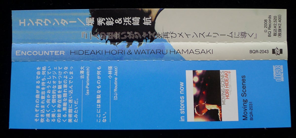 Encounter is the first album from co-leaders pianist Hideaki Hori and saxophonist Wataru Hamasaki, released in 2008. Since then, in addition to their other bands and activities, the two jazz musicians have continued to perform together and release many albums under the group name Encounter.