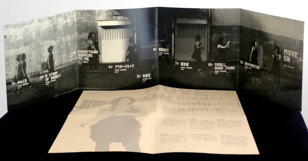 Hikari Ichihara’s fifth album Move On features the trumpeter’s quintet performing finely-tuned compositions with jazz integrity and a vibrant sound full of sparkling energy. The tracks range from knife-edge sharp modern jazz, bouncy swing, wistful ballads, and rapid-fire straight ahead jazz. Also included is a single jazz standard, a fresh interpretation of “Everything Happens To Me”, delivered here with a relaxed groove.