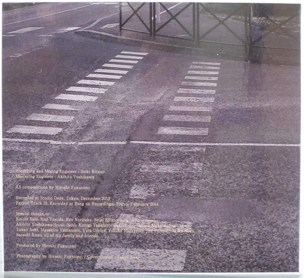 With Fukutomi’s compositions and his guitar taking center stage, the quartet’s sound is definitely that of a jazz guitar leader’s band. The sound of the jazz guitar is varied, however, and his tone switches between mellow and fluid electric guitar sound to clear and articulate acoustic guitar, coloring the compositions with distinct personalities to suit the song style. Some guitar effects are also used tastefully to add textural layers while preserving the core sound of pure guitar expressiveness.