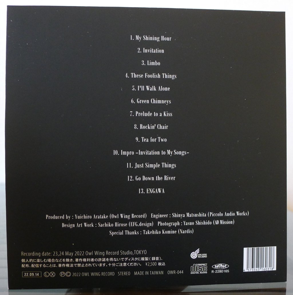 In this way, I have selected standard songs with a high degree of freedom for this album. For live performances, one song may last about ten minutes, but for CDs, personally, I prefer to have many shorter pieces (especially with solo piano albums), much like the meals of Kyoto-style obanzai or Sri Lankan cooking. Most of the songs on this album are about five minutes long or less.