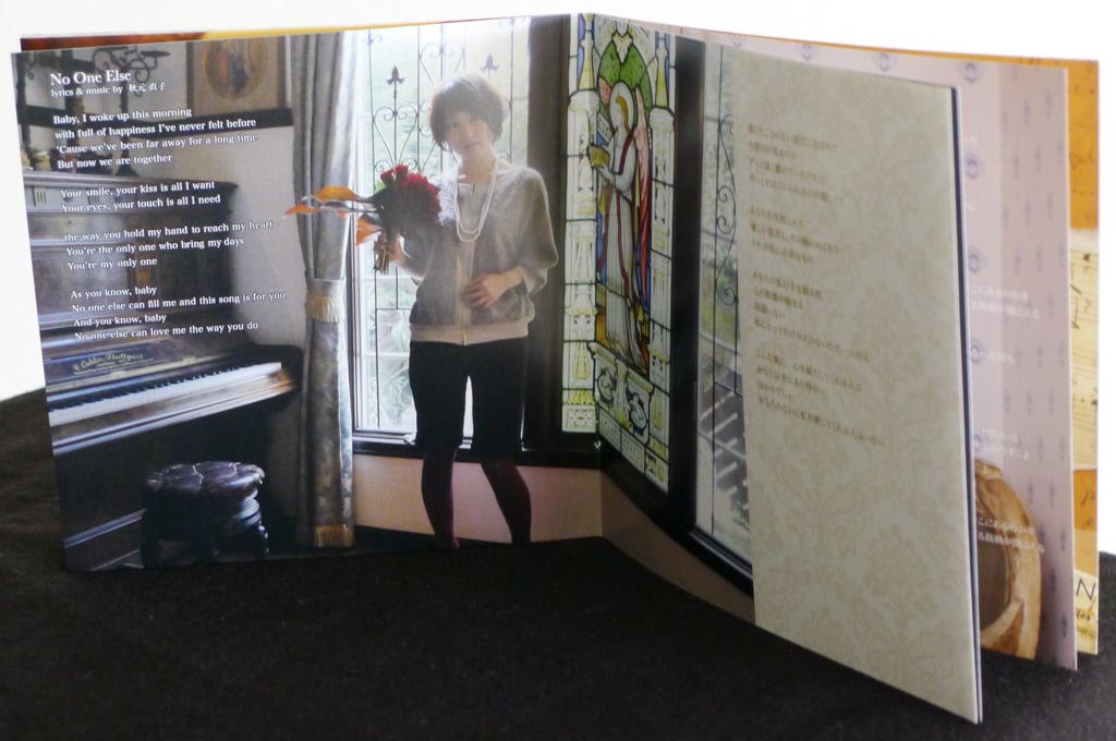 After the classy opener, the album continues with the title track “No One Else”, a soulful pop ballad written by Akimoto. The remaining five tracks include three jazz standards: the chaste “I’ve Got A Crush On You”, a sultry “This Masquerade”, and a tender, bossa-flavored “Fly Me To The Moon”. While Akimoto sings in English for most of the album, she chooses to sing in Japanese for two pop songs, “Sentimental” and “Ajisai”, adding to the musical variety and showing us more of Akimoto’s range and affection on her album debut.