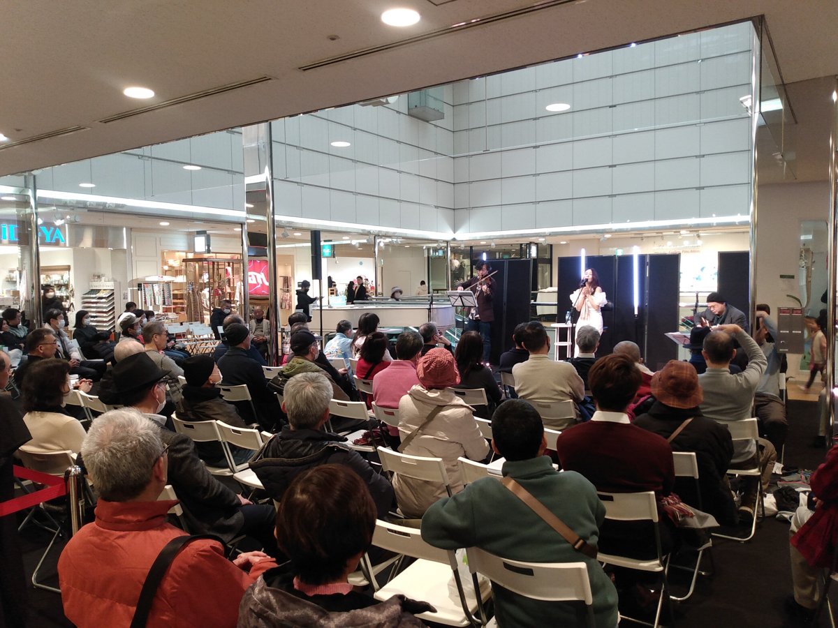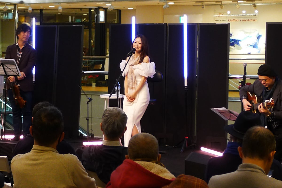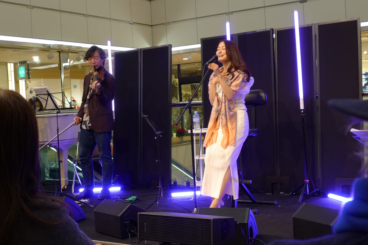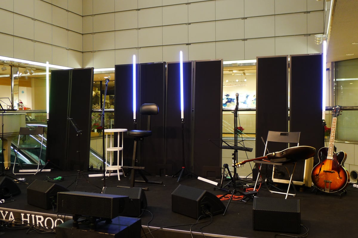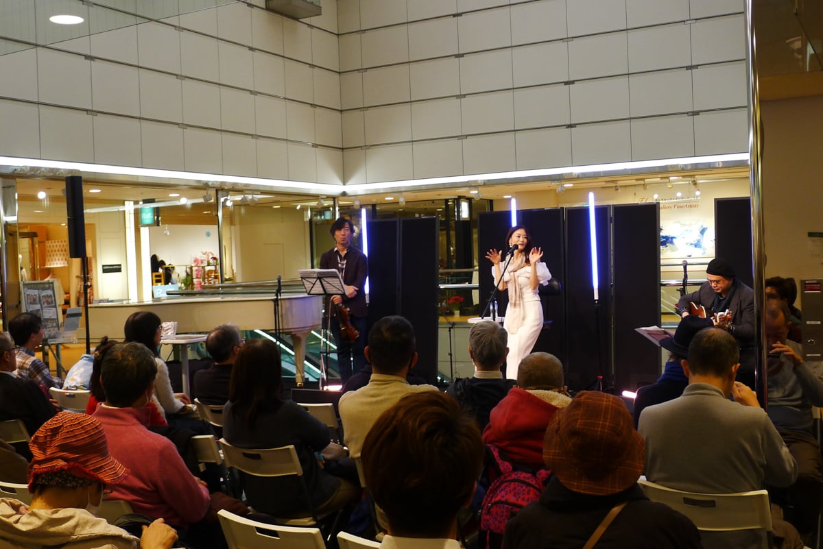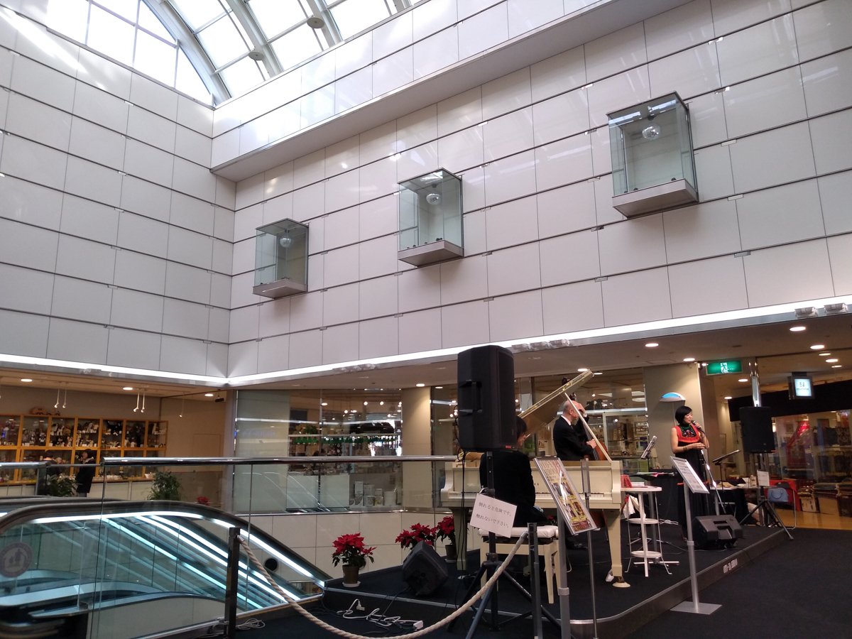A markedly different destination in the collection of interesting jazz spots in Tokyo, Oto-ya Hiroo is an open performance space in the Hiroo Plaza shopping mall. The light-filled atrium on the second floor holds daytime jazz events, where a wide stage and folding chairs are set up right next to the mall’s central escalators.