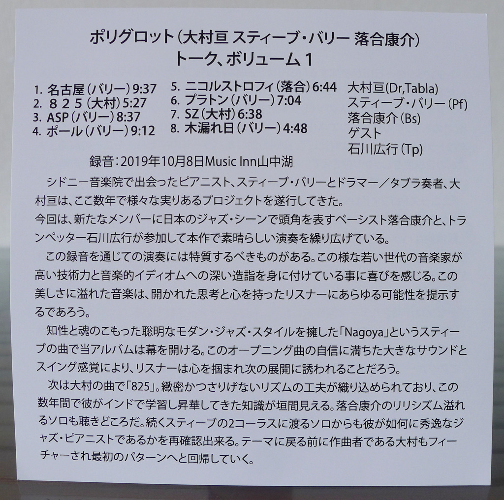 The album’s liner notes with a concise song-by-song-rundown are reproduced on pianist Steve Barry’s website, and they offer a great description of the album in both English and Japanese.