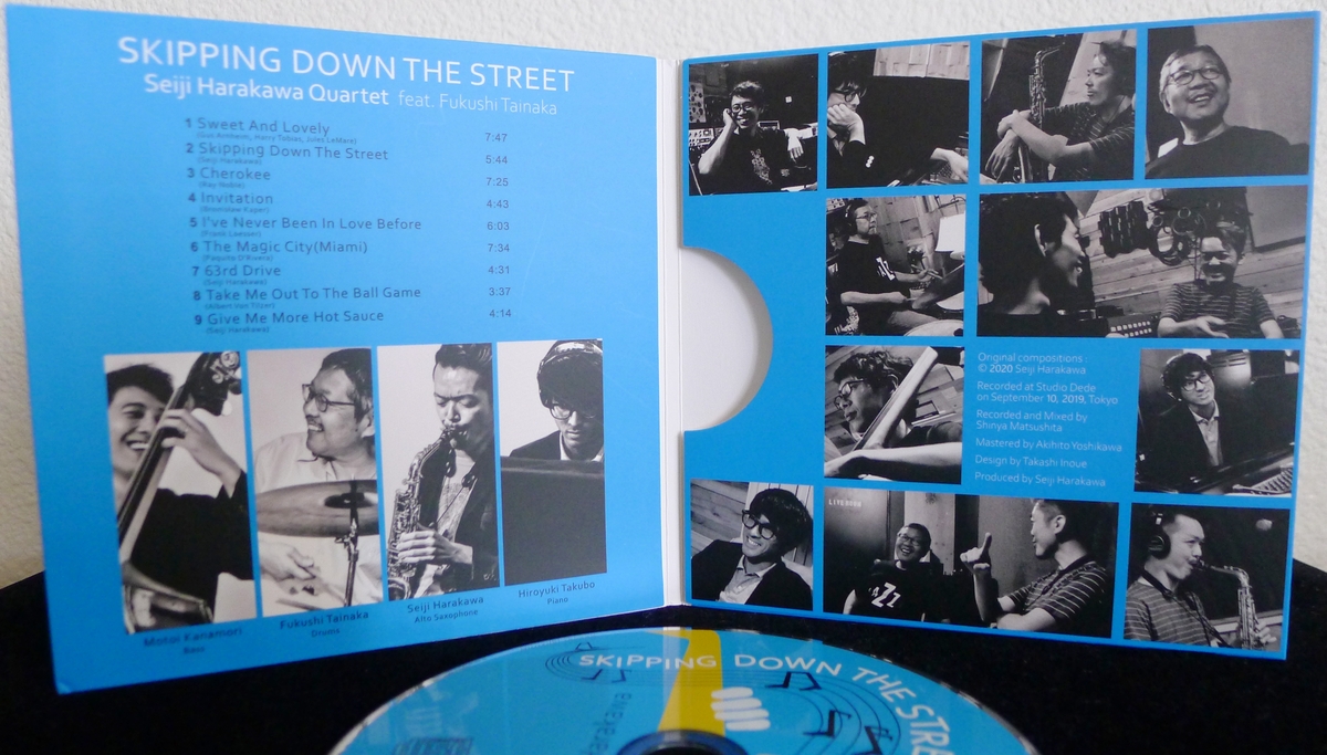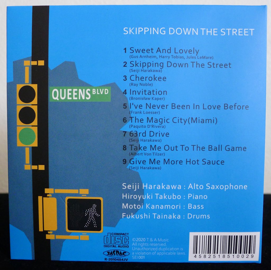 Phrases like good honest work and good clean fun convey the simple and satisfying rewards that result from high levels of skill, effort, and enjoyment. Good honest music is a simple but to-the-point description of saxophonist Seiji Harakawa’s debut album Skipping Down the Street, an excellent showcase for the agile alto sax leader and rhythm section to project their skill, effort, and enjoyment of jazz.