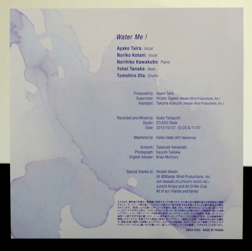 Inspiring contrasts like strong and warm, comforting and demanding, smoky and silky, the dual vocal front-line of “Water Me!” delivers new takes on familiar jazz tunes with Water Me! from 2014. Vocalists Ayako Taira and Noriko Kotani harmonize and play off each other, syncing up or alternating in offset phrases as they combine, intertwine, and unspool melodies together.