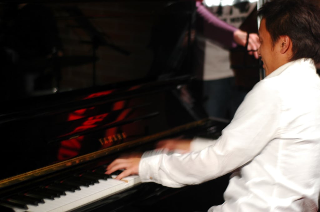 As far as any qualitative musical or sound differences generally ascribable to Japanese musicians, there is nothing that is absolutely true across the board, of course. Perhaps the large number of Japanese people who receive classical piano training or receive music education at school results in a larger number of jazz musicians who build on foundations of high technical ability and musical knowledge. Maybe there are inherent cultural and language differences that naturally influence ways of playing music. Can the way of speaking through words influence how one musically speaks through an instrument?