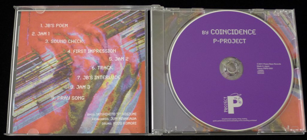 Jazz, soul, and funk bassist Yoshihito “P” Koizumi is an active member of a number of Japanese jazz groups and events, and the 2011 album By Coincidence marks his debut release as “P-Project” featuring Jun Miyakawa on keyboards and Kohzo Komori on drums. With nine tracks and a running time of 34 minutes, the album is full of funky beats, laid-back grooves, retroesque electronic keyboards, and slick bass lines.